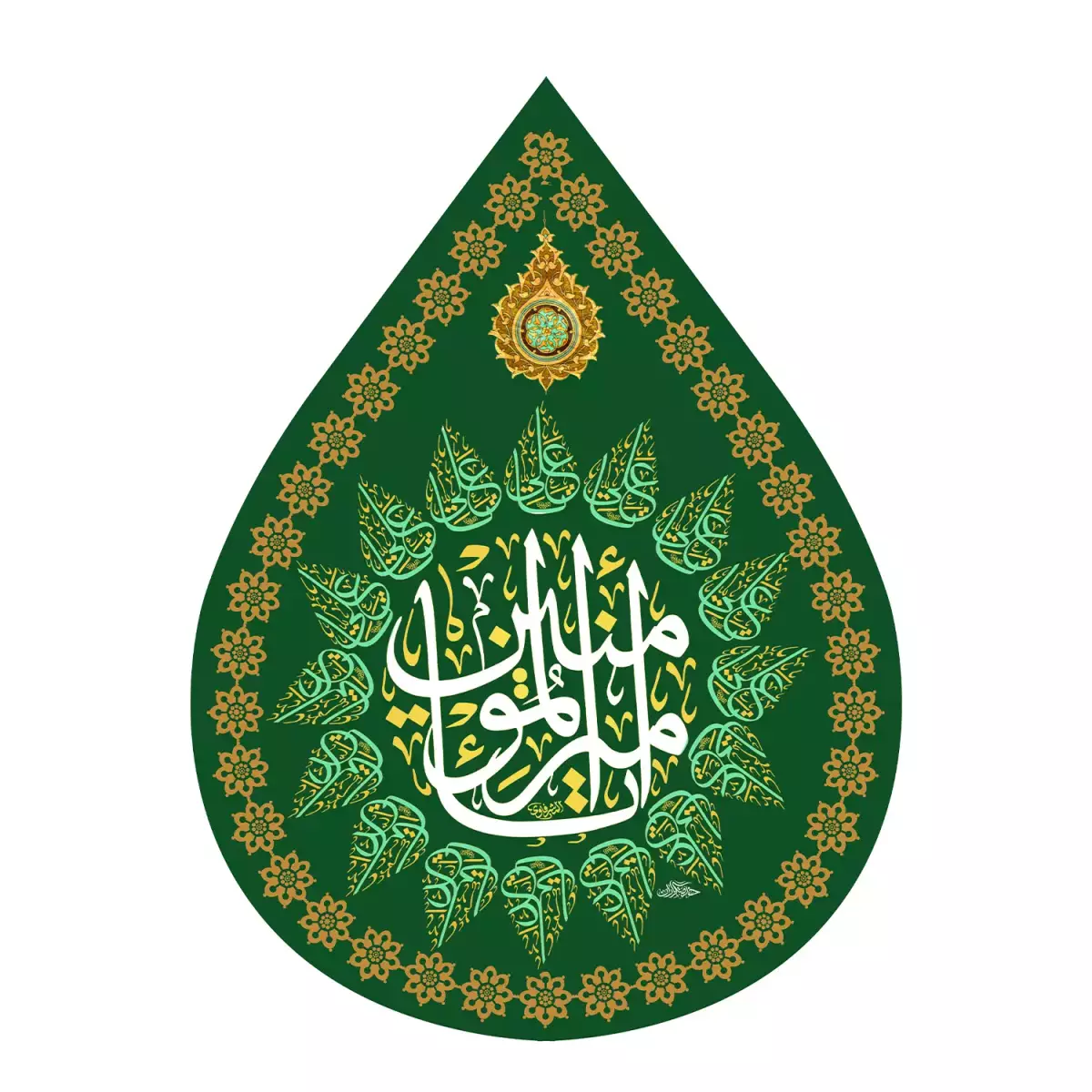 فرم اشک، نمادی از سوز درونی، اشتیاق و عشق ناب به مولای متقیان است و ظاهری نرم و چشمنواز به کتیبه بخشیده است.